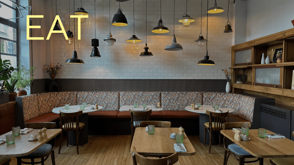 - Bombay-style breakfast in a vibey setting (the bacon naan roll is a must).